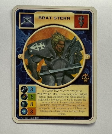 Gdy Brat Stern przebywa w tej samej strefie walki co inne karty typu Sacred Warrior, nadaje im bonus +5 do Walka wręcz, Strzelanie, oraz Pancerz.