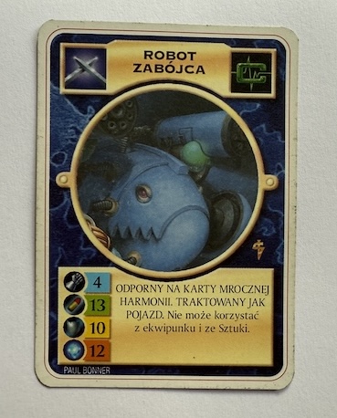 Robot Zabójca to unikalna karta wojownika (Warrior) z frakcji Cybertronic w klasycznej grze karcianej Doomtrooper, o rzadkości Uncommon. Ten potężny, zmechanizowany zabójca został zilustrowany przez Paula Bonnera i posiada imponujące statystyki, szczególnie w walce wręcz.