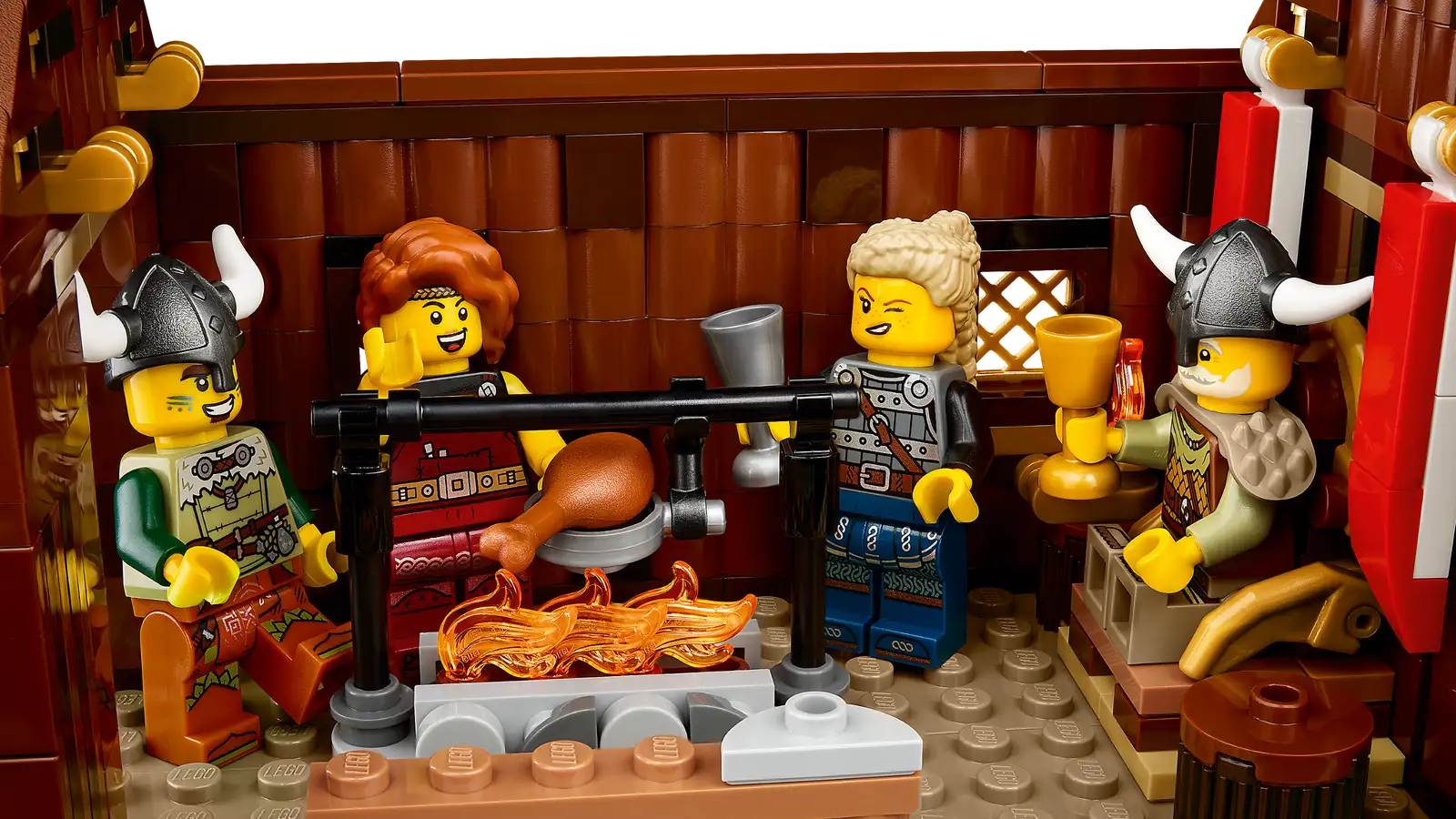 LEGO 21343 Ideas: Wioska Wikingów to klimatyczny zestaw kolekcjonerski, który przenosi budowniczych w surowy, nordycki świat inspirowany legendami i codziennym życiem Wikingów. Sceneria położona na skalistym wybrzeżu została zaprojektowana z niezwykłą dbałością o detale – od charakterystycznych drewnianych zabudowań, przez kamienne fundamenty, aż po naturalne elementy krajobrazu.