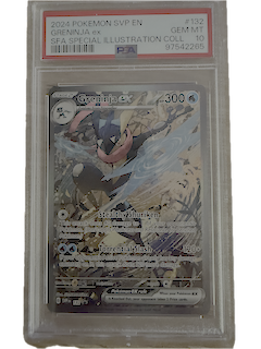 Prezentujemy wyjątkowy egzemplarz kolekcjonerski: Greninja Ex (SVP 132) – Black Star Promo z linii „Shrouded Fable Special Illustration Collection”, oceniony jako PSA 10 Gem Mint. To błyskotliwa karta promocyjna w języku angielskim – doskonały wybór dla fanów Pokémon TCG i inwestorów.