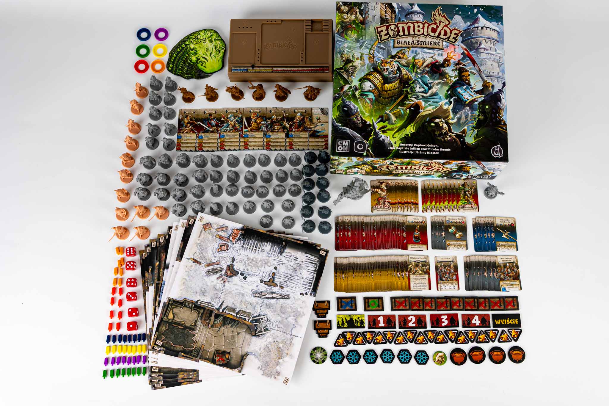 - Figurkowe szaleństwo. Ruszaj do gry z 83 wysokiej jakości plastikowymi figurkami: zombie, ocalałymi, nekromantą i abominacją w grze, w której klasyczna, wysoka jakość CMON spotyka dalekowschodnią estetykę mroźnych stepów.